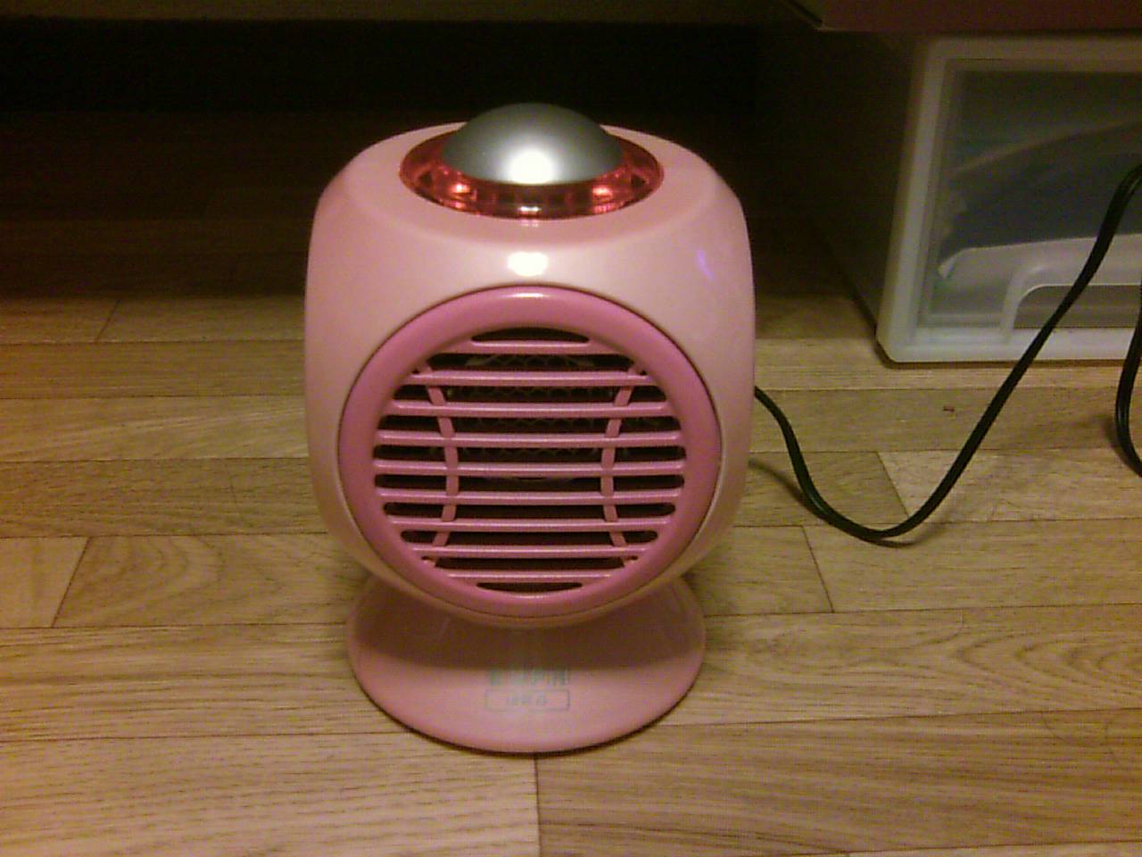 で見てみたファンヒーターを結局買ってしまいました。在庫限り1280円だったから安いのか高いのか分かりませんが、暖まればいいので…。横にあった2480円のもちょっと気になりましたがね(^^;)