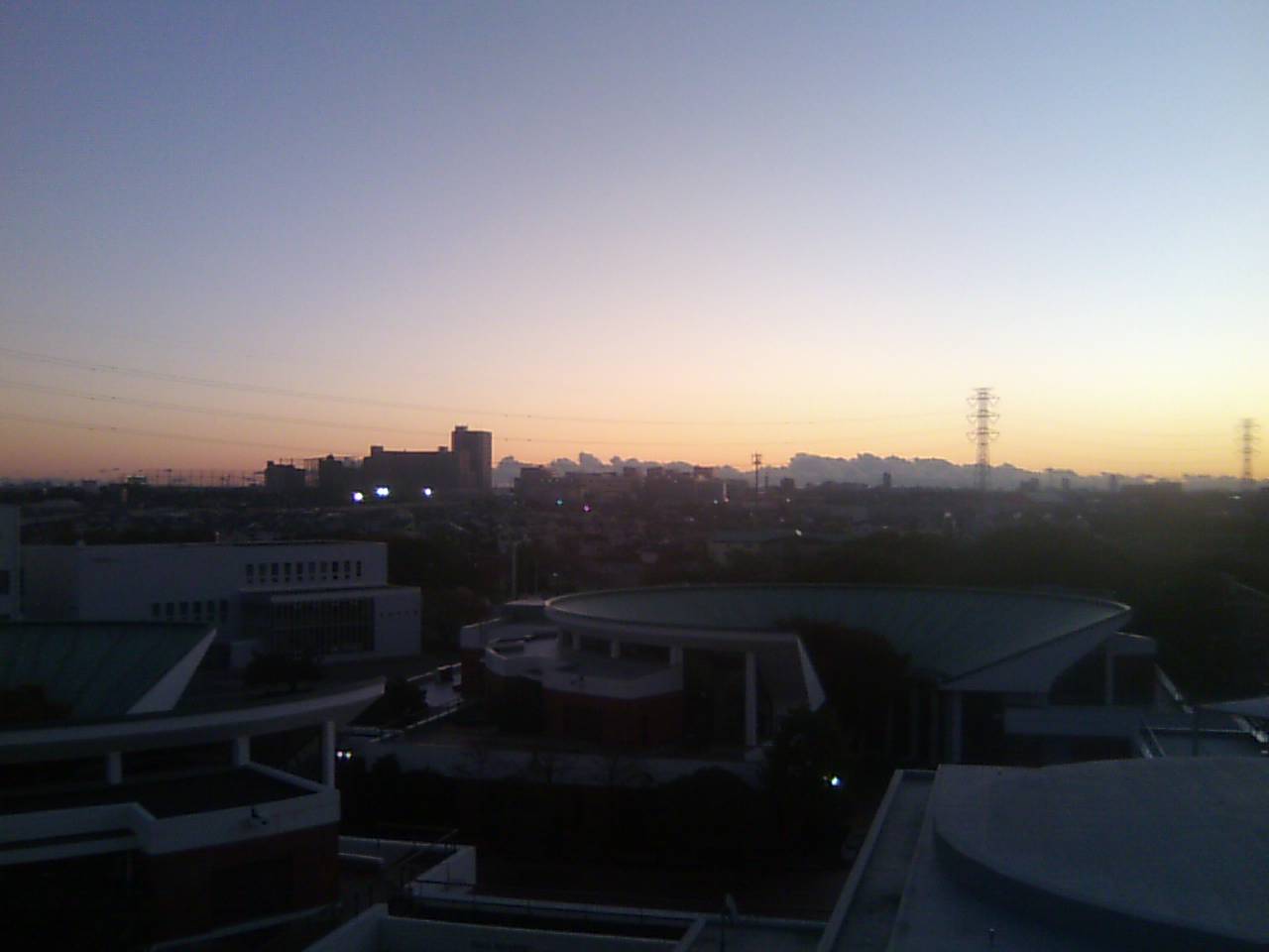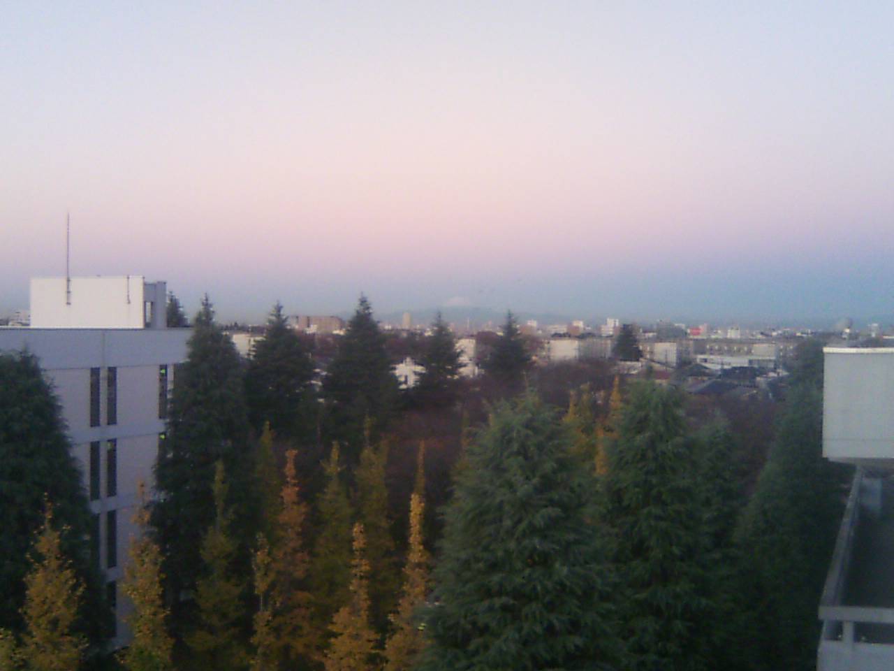 朝日を見ようと屋上に上がって戻ろうと振り返ったら偶然富士山が見えたんです。澄んだ空気も手伝ってかなりきれいに見えたんですが、携帯電話しかなかったものでちょっと見づらい写真になってしまいました。