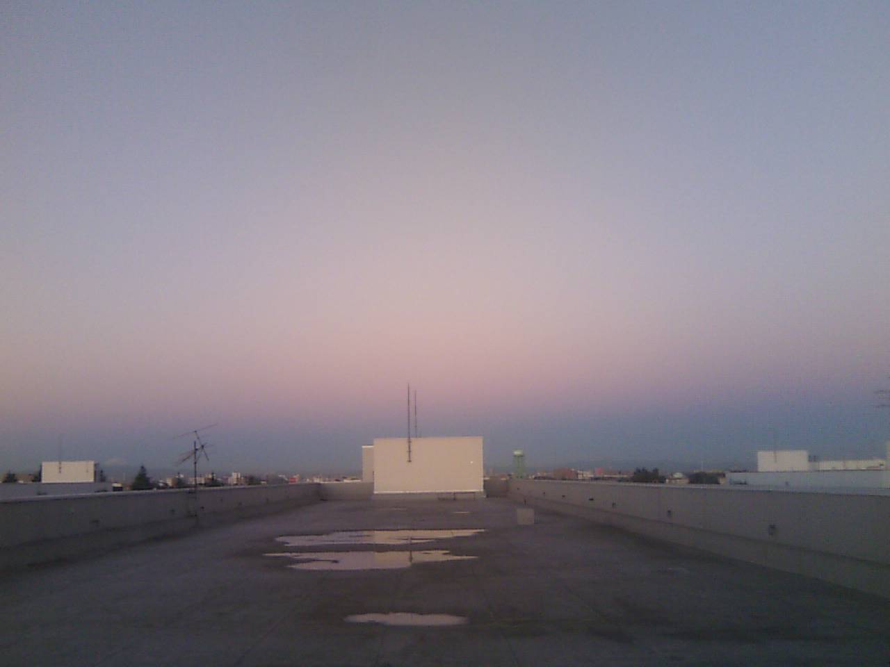 とおり朝まで起きてました。日の出の時間が6時20分とのことだったのでちょっと早めに屋上へ。