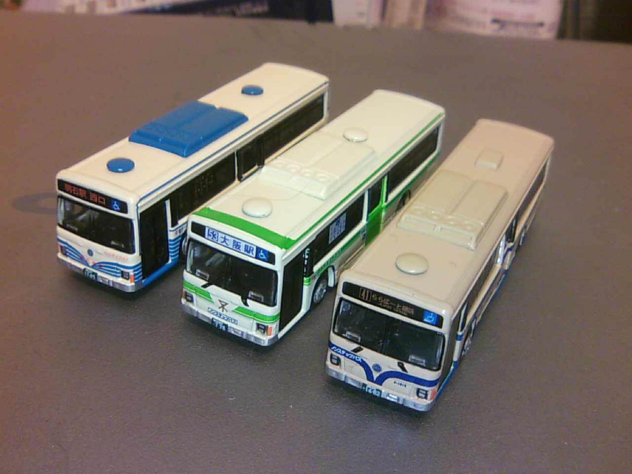 1/150の路線バス。同じところでまた2台追加購入しました。今回出たのは大阪市営(日野)と横浜市営(いすゞ)のノンステップ車、両方とも当たりの車両。