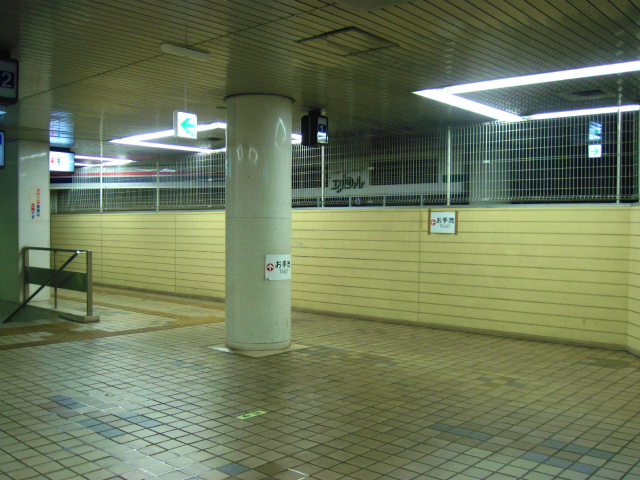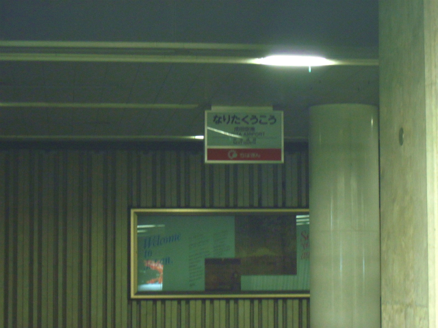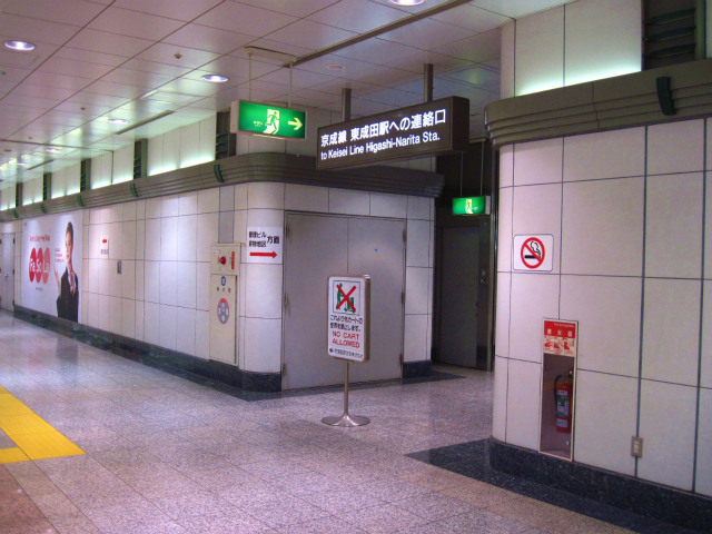 あちこちに成田空港駅だった頃の遺構が残ってます。目立つものでは駅名票、ベンチ、飲料水の蛇口。コンコースに上がれば駅売店なんてのも…。改札内に地上へ上がる階段もありましたが、これはどこへ繋がるのやら。 改札の外も広い空間を仕切るように壁が設置され、なんとなく怖い雰囲気…。国際空港の敷地内なんですけどね、ここ。