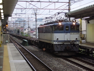 約1か月前に西大井駅で撮った貨物列車なんですが…機関車の後ろはずっと空コキ(^^;) 確か20両くらいだったと思いますが、コンテナ1つ載ってないって…なんだったんだろうなぁ。定期列車だったりしたら驚きだけど、昼間に山手貨物線から来るのってあんのかな? (^^;)