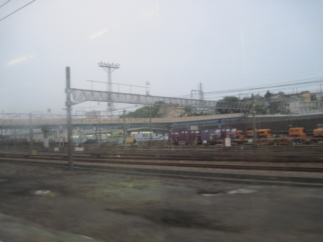 貨物線からの風景。左が横浜羽沢駅、右が新鶴見信号所構内