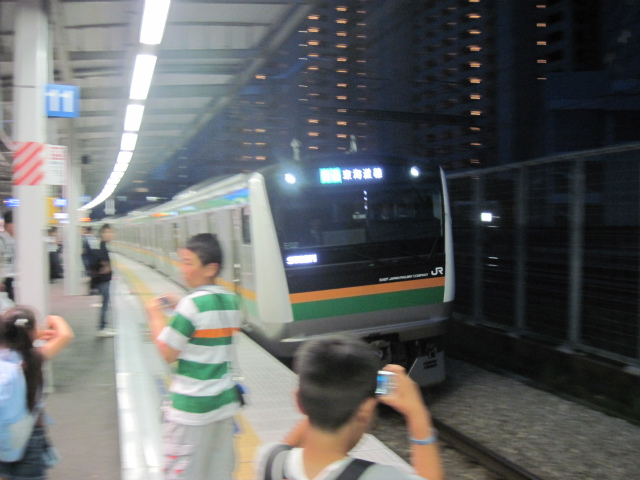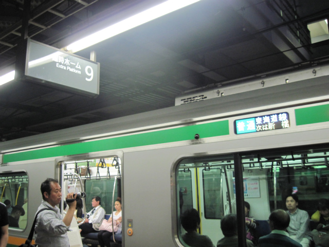 新橋から先は普段通りの線路なので、ここで折り返し。すぐの下りが藤沢行だったので、改札口を出てすぐに入場。
