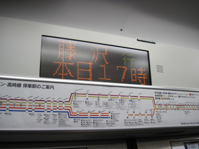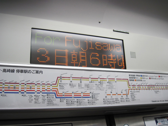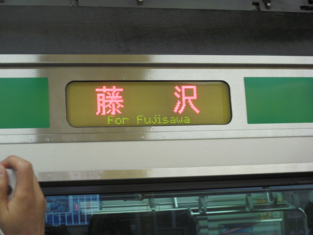 藤沢行の車内LED表示。Fujisawa Terminal.という表示も。