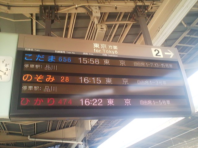 "こだま"は"停車駅:各駅"だった記憶があるんだけど、"停車駅:品川"に変わったのね。新横浜からだったらどれでも一緒だけど。