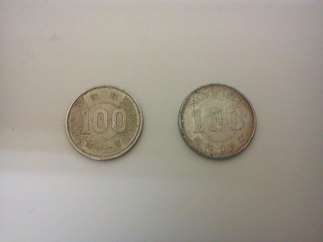 今回手に入れたのは左側の100円玉。右のは以前紹介した東京オリンピック記念硬貨です。