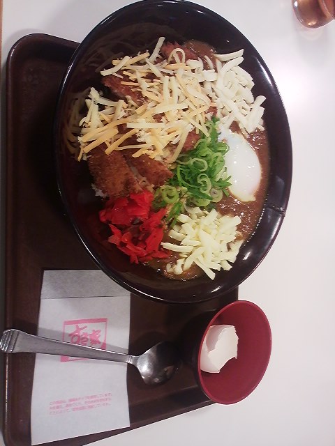今回の組み合わせは、とりそぼろ丼+トンカツ+おんたま変更+チーズ+カレー。もはやなんでもあり(^^;) 親子丼だし、カツカレーだし、ネギたっぷり(^^)