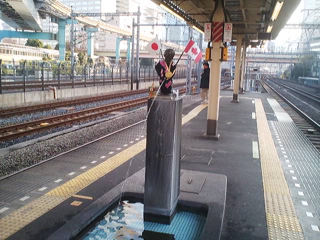 浜松町駅の名物小便小僧ですが…日本とカナダの国旗を背負っていました。