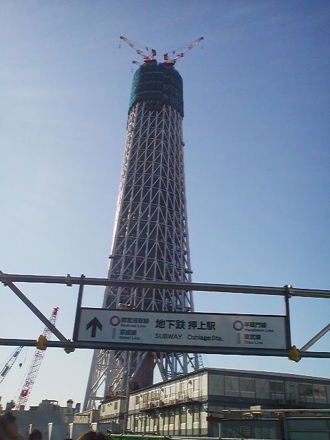 東京スカイツリーのはずなんですが…看板によるとこれは押上駅だそうです(^^;)