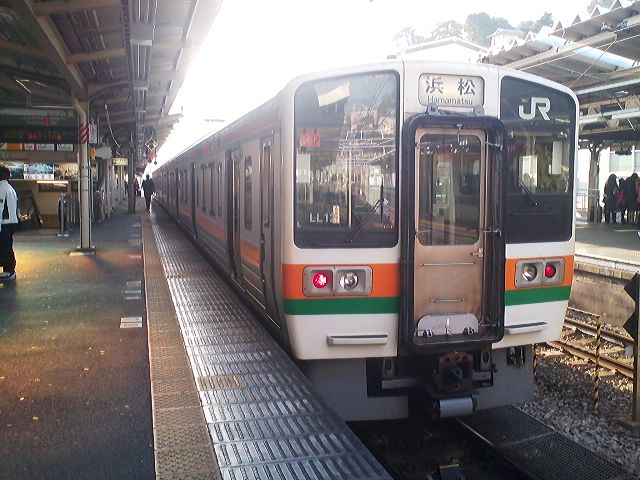 時間がないのですぐに乗換え、14時37分の浜松行。3両編成のLL12編成、シングルアームに換装済みの編成。