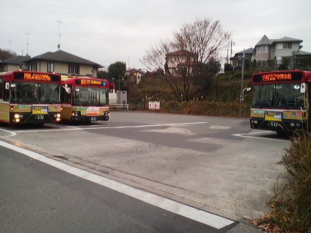 左から、大02、日21、バ01のそれぞれ宇津木台行。
