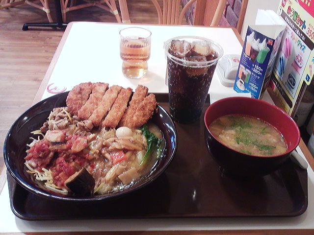 トルコライスといえば長崎の有名な料理。トンカツ、ピラフ、ナポリタンの組み合わせが定番らしいですが…すき家であれこれトッピングしたら似たようなのができました。