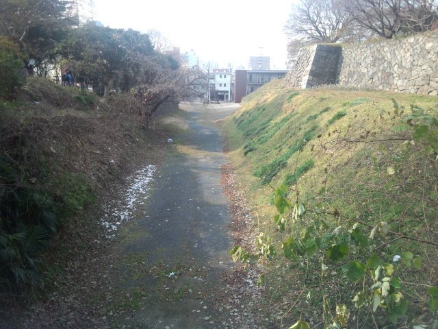 ここで90度方向を変えていました。お堀の90度って路面電車のレベルです。市政資料館南交差点。