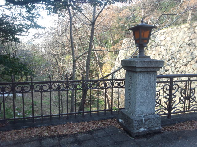市役所の近くにはお堀へ降りる階段が…今でいう大津橋交差点です。他に駅だった痕跡は見あたりませんが、階段には名鉄の看板が…今でもここは名鉄の土地なんですね。