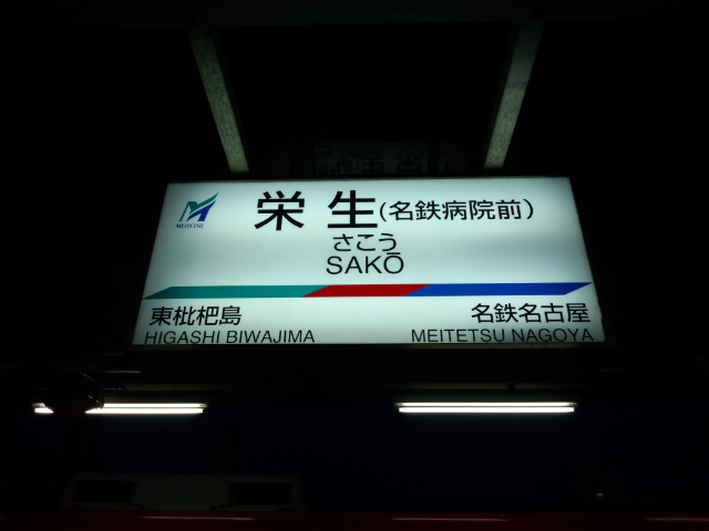 栄が生まれると書いて栄生、名鉄名古屋から1つ岐阜寄りの駅です。急行以下全ての電車が停まる有人駅。名古屋から種別が変わる電車がかなり多いので掲出の時刻表は"名古屋からの種別"で実際に来る電車と種別が違うという…まぁどっちが分かりやすいのかよく分かりませんが、そうでもしないと"名古屋から○○"だらけになりますからねぇ(^^;)