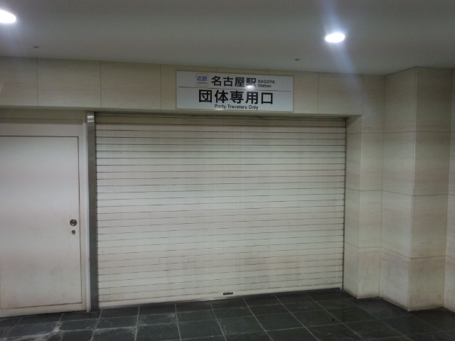 近鉄名古屋駅の団体入口、ようやく見つけました。広小路口からまっすぐレストラン街を抜けた先に目立たぬように…ちなみにそこから外に出たところにある妙な盛り上がりは近鉄名古屋駅正面口への通路。名鉄バスセンターの階段の裏というこれまた非常にわかりにくい場所です。