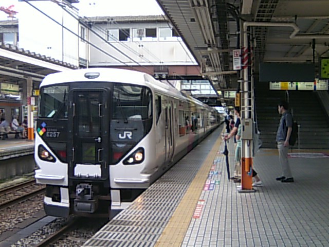 乗った500番台も白基調で明るい車内だけど、それは0番台も同じ。先頭の座席だからかもしれないけど、足元もゆったりしてて普通列車グリーン車より快適(^^) 湘南ライナーだったころに乗っとくべきだったなぁ…いまさら悔やんでもしょうがないけど(^^;) もと地元車両なんですよね、257系も351系も。まぁ助っ人ですがね(^^;)