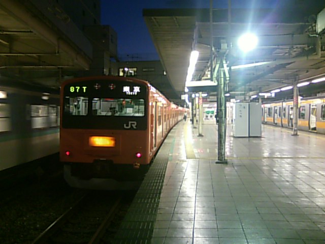 東京駅から中央線に乗ろうとしたら聞き慣れた音…201系でした。近くの車両に乗って後ろの方へ移動、車番を見たらモハ201-254…おなじみのH7編成です。ほんと、よく来るよなぁ(^^;)