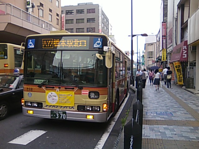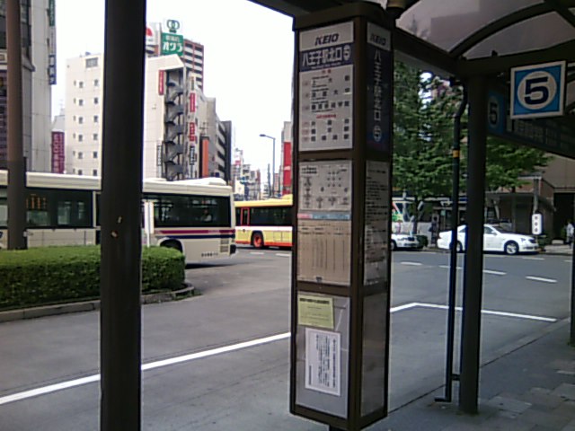八王子駅は京王と西東京がメインというわけでこれら3路線は方向を問わず5番線から発車。もちろん、京王と共用でポールは京王のもの…なんだけど…片面は神奈中の広告ばっかり(^^;) 反対側はもちろん京王ばっかりなんですが、神奈中のポール以外で神奈中に乗るのがなんとも不思議な感じ(^^;)