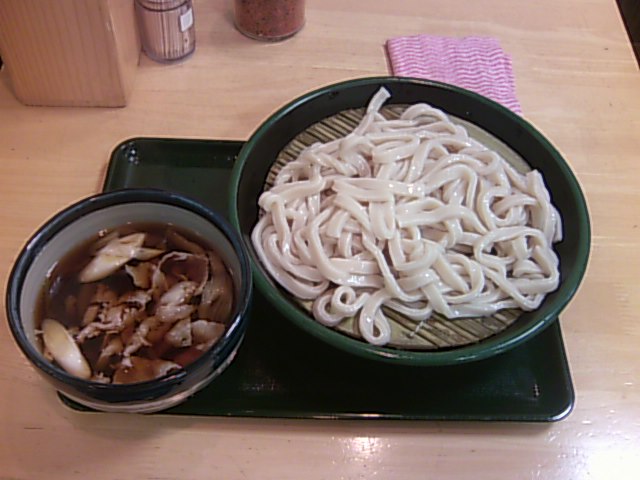 麺の違いがイマイチ微妙なところがあるけど、ちょっと太めでやや蕎麦よりな色。噛み応えがあってなかなか…。汁は豚バラとねぎの入った濃いめの汁。まぁ関東風ですからね(^^;)