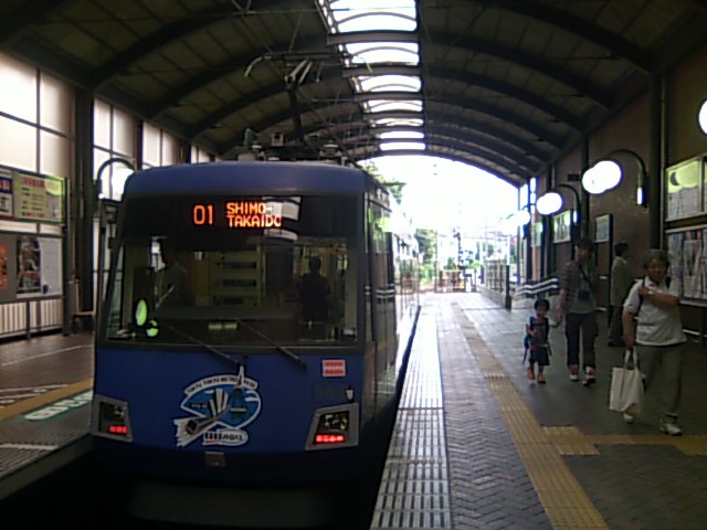 東急というと銀色の電車しかないイメージがあるけど、世田谷線は近所の井の頭線と一緒で実にカラフル。たまたま乗った303編成は紺色で東急メトロパスの広告車になってたけど、なんとなく江ノ電の広告車を連想させるなぁ(^^;)