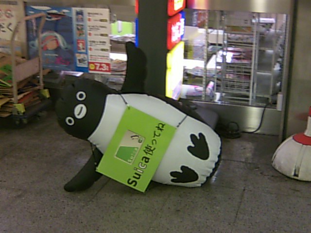 北習志野駅の改札前のコンビニなんですが…有名なペンギン君がこんなことをしてました。