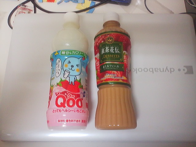 両方ともコカコーラ社の製品なのは偶然なんでしょうか(^^;) QOOはさっぱり目の味、紅茶花伝はイチゴの香りとパイ系の味がします。もちろん、どっちも美味しいです(^^) 是非お試しあれ。